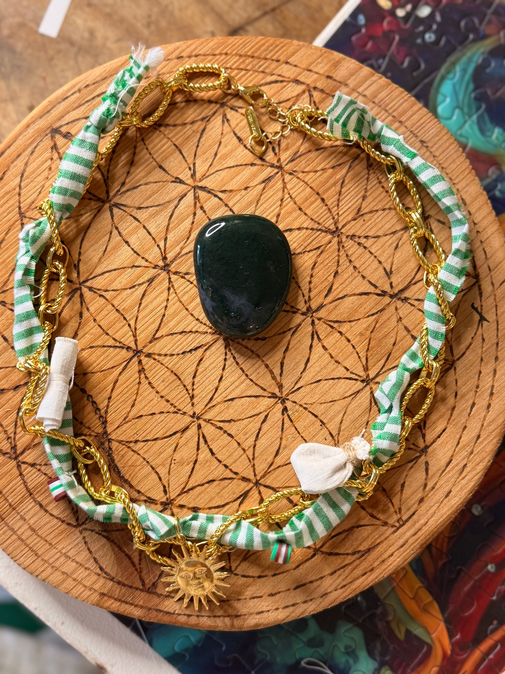 Les petits pochons sont des germes d’intention : ce que tu sèmes en conscience, tu le rĂ©coltes en grand. Il s’y cache dedans des pierres, graines, symboliques et code vibratoire.Â