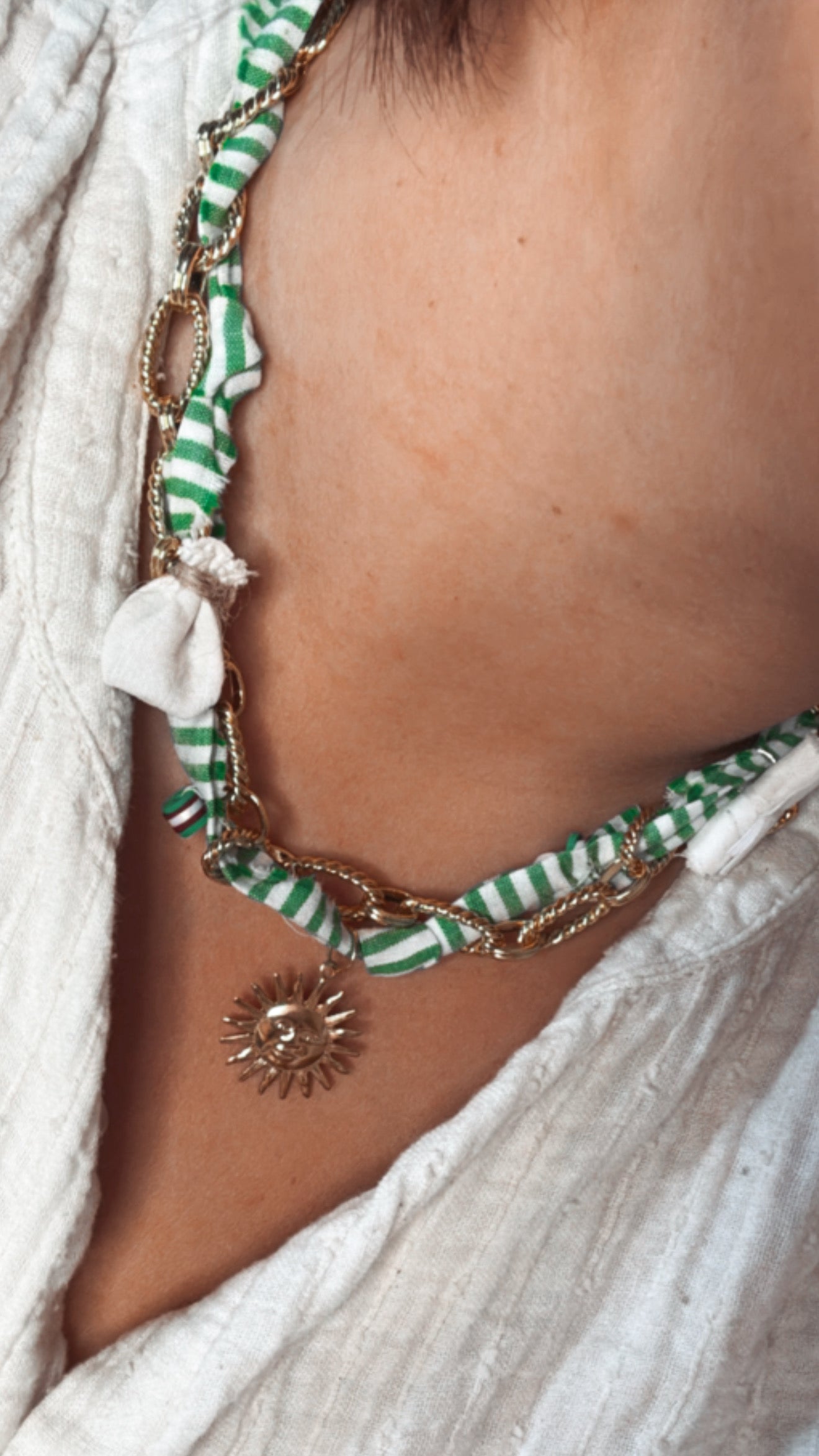 Le tissu vert symbolise la fertilité, la prospérité et l’élan de vie.
