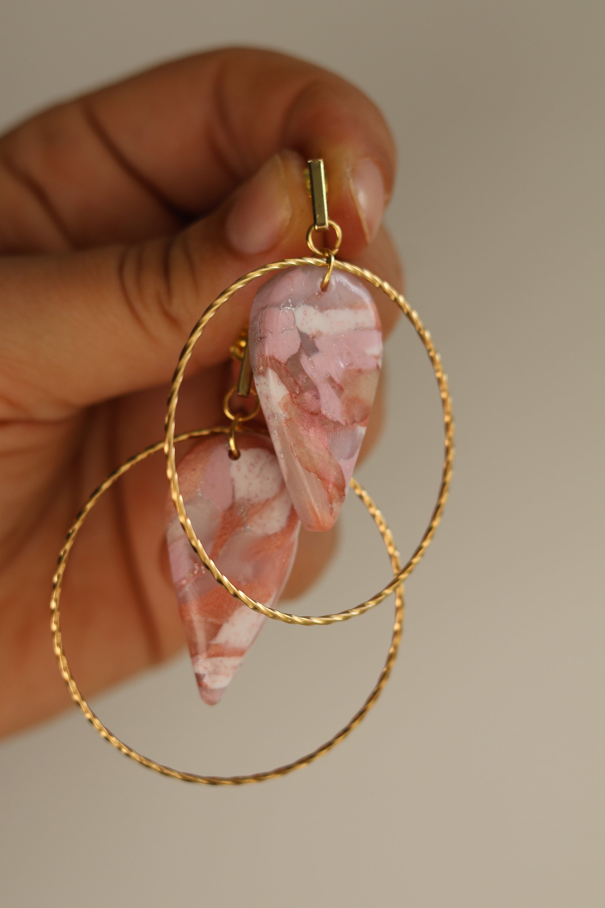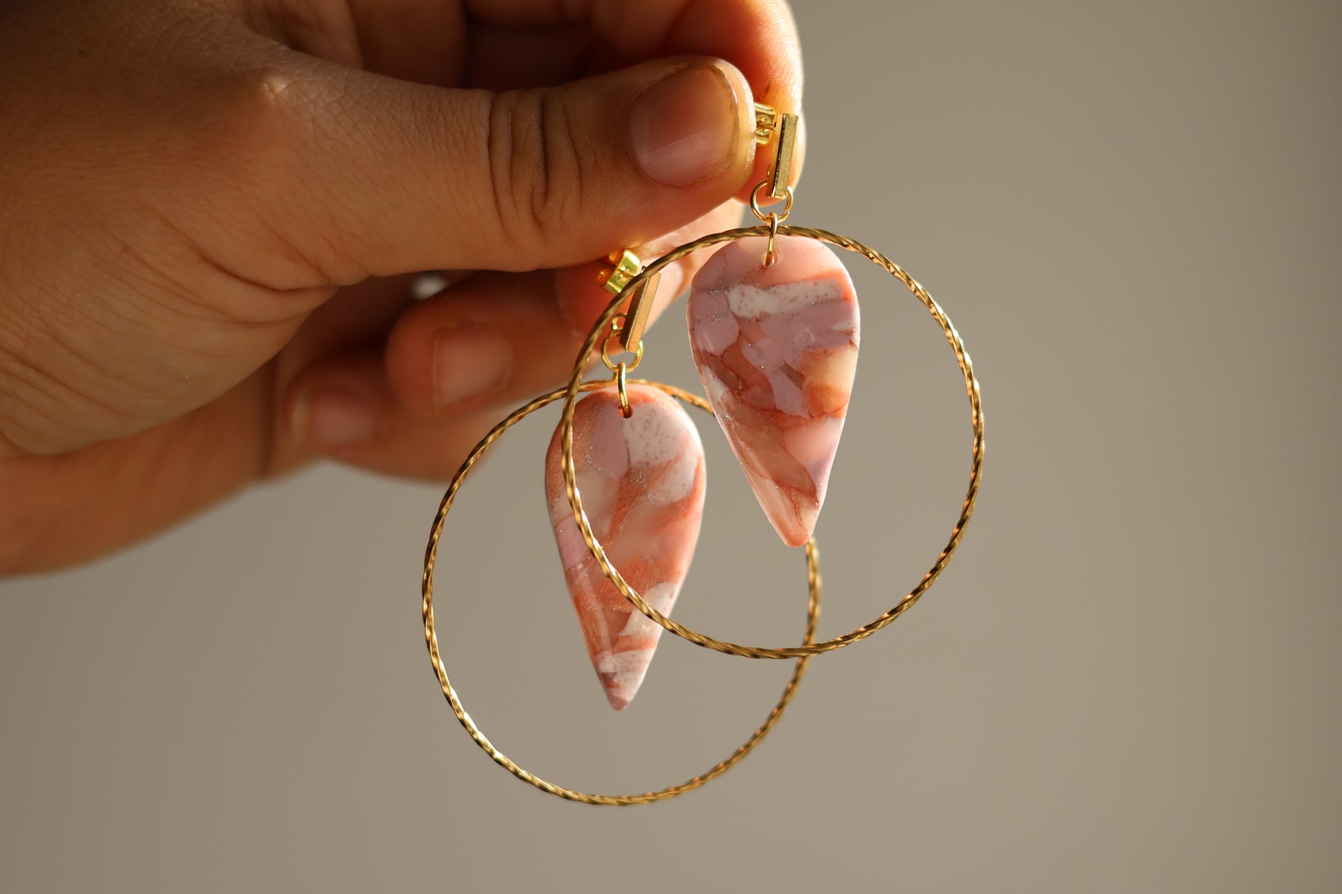 Découvrez nos Boucles d'oreilles Goutte Rose faites à la main dans notre atelier au Pays Basque. La goutte rose en pâte polymère est montée sur une monture en acier inoxydable pour une pièce unique. L'accessoire parfait pour ajouter une touche de charme et d'élégance à votre tenue.